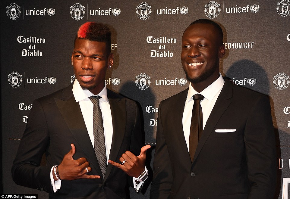 United superstar Paul Pogba poses with the grime artist as the pair wear huge smiles ahead of the event in Manchester.