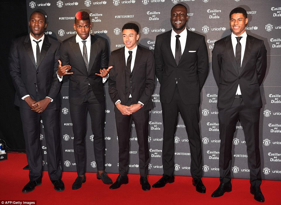 Manchester United stars attended charity gala at Old Trafford which was headlined by grime star Stormzy (centre right).