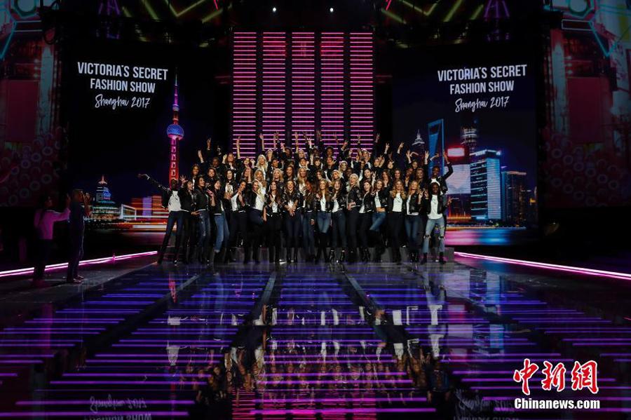 Victoria's Secret models pose for a photo during the 2017 Victoria's Secret Fashion Show's model group appearance event in Shanghai, Nov. 18, 2017. (Photo: China News Service/Zhang Hengwei)