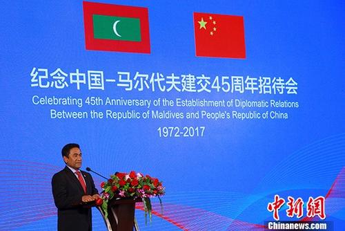 “Forty-five years ago, one of the smallest members of the global community signed an agreement with one of the world’s biggest to establish bilateral relations based on mutual trust, aspiration toward common development, and respect,” Maldivian President Yameen Abdul Gayoom said at the reception.