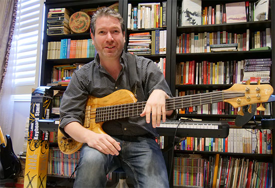 In between being a dad and translating Chinese literature, he enjoys playing bass whenever he can. Photo: Lance Crayon