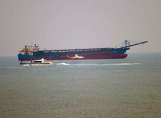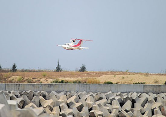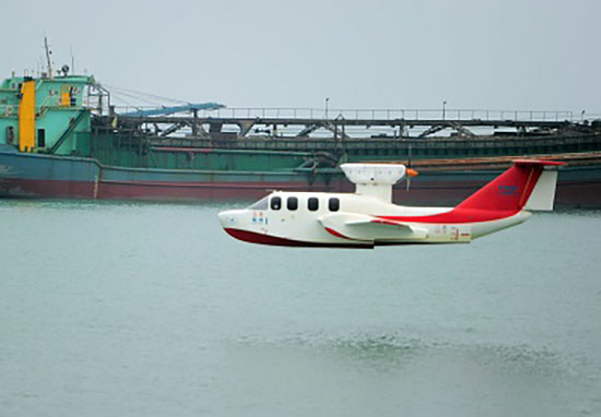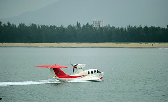 Xiangzhou-1, a fixed-winged seaplane, conducted trials around Yazhou Bay in Sanya, Hainan province on Monday. It was domestically developed for commercial use.