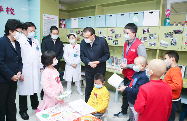 The premier visited leukemia patients at Wuhan Union Hospital on Tuesday.