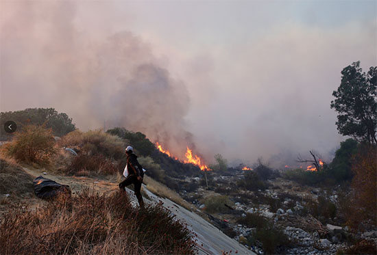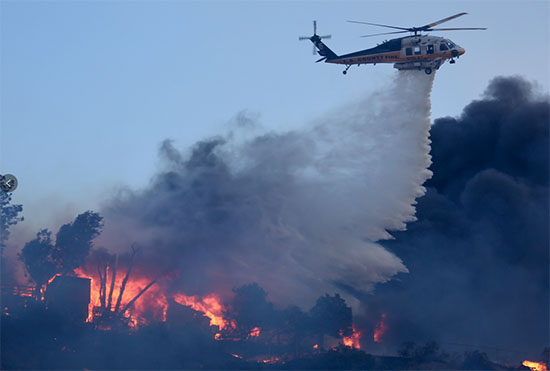 Los Angeles (People's Daily) -- Six wildfires continue to burn in Los Angeles and surrounding areas, including Ventura, Santa Barbara and San Diego, on December 11, 2017.