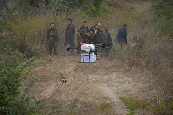 A drone delivering medicine provided by Chinese e-commerce giant JD.com recently landed in the village on a cliff in southwest China’s Sichuan Province, indicating that the village’s shortage of supplies will be greatly alleviated, guancha.cn reported.
