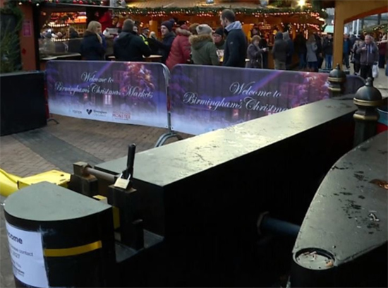 Barriers were set up to protect market visitors in Birmingham and Manchester. Photo: Sky News