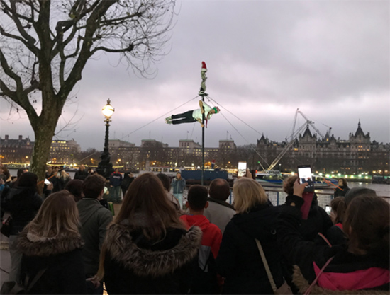 People enjoy a live performance at the Southbank Center Wintertime Market. Photo: Qiang Wei
