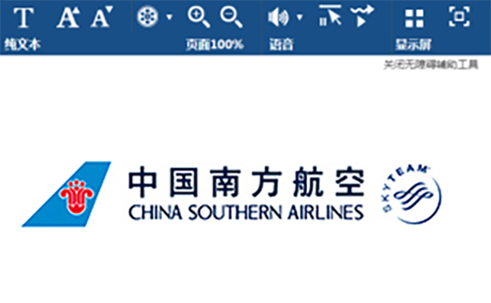 To facilitate the visually impaired people, China Southern Airlines sets the entry of the barrier-free website on the top of the official website’s home page. Through special keyboard, visually impaired people can log on to the barrier-free website by one-click. In addition, the website has also designed a variety of content-browsing tools such as cursor positioning, text size control, page color contrast, voice auxiliary function and so on.