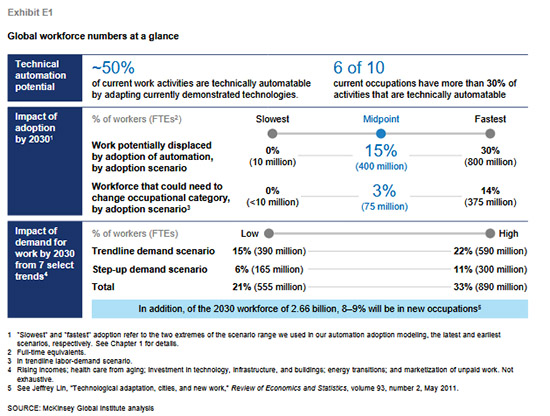 60 percent of occupations, at least one-third, had the potential to become automated based on the assessment of today’s technological capabilities.