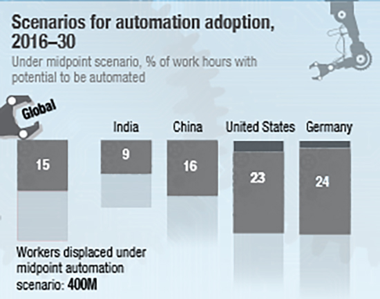 “Automation technologies including artificial intelligence and robotics will generate significant benefits for lifting productivity and economic growth,” said the MGI report titled, “Jobs lost, jobs gained: Workforce Transitions in a Time Of Automation.”