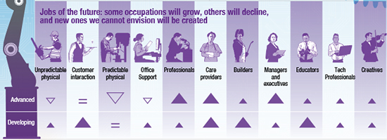 The report reveals a mosaic of potential occupation shifts in the years ahead, and how it will impact skills and wages.