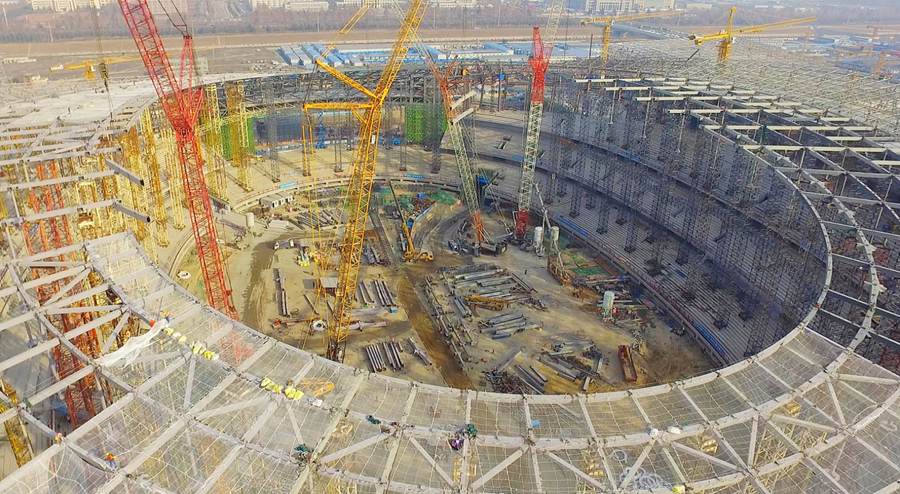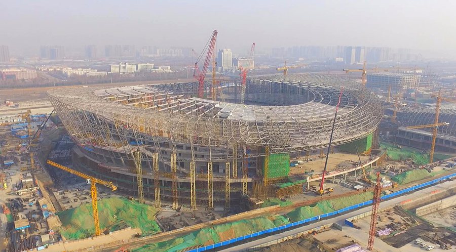 Photos taken on December 27, 2017, show the main concrete structure of the Olympic Sports Center in Zhengzhou, which resembles Beijing’s iconic Bird’s Nest stadium. The roof of the stadium was built with nearly 20,000 tons of steel.