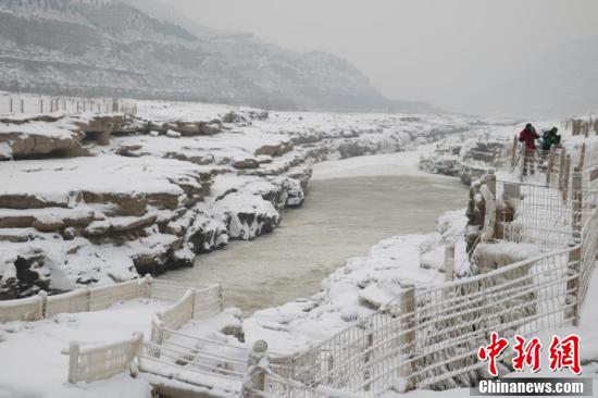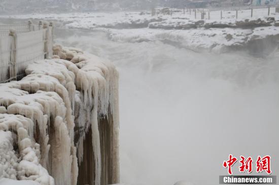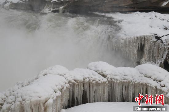 Hukou Waterfall, a grand fall at the upper reach of the Yellow River, has turned into a world of ice and snow after the first snow recently fell on northwestern China’s Shaanxi province, chinanews.com reported on Thursday. Water flows over ice covered rocks and froze into icicles, creating a spectacular winter scene.