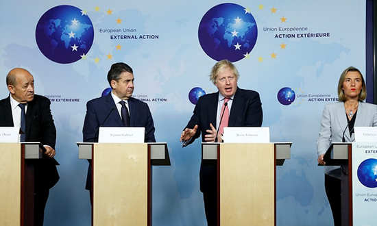 London (People's Daily) - Following a meeting with foreign ministers from Iran, Germany, and France, UK Foreign Secretary Boris Johnson urged the US not to abandon the Iran nuclear deal, stressing its essential importance for international security.