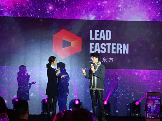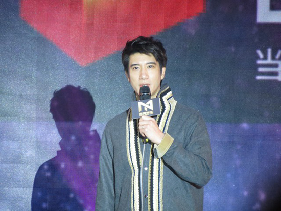 Leehom Wang talked to the hostess at the press conference, Jan. 11. (Photo: Qu Qiuyan)