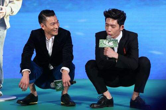 The picture of Andy Lau and Jing Boran squatting in a TV show/File photo