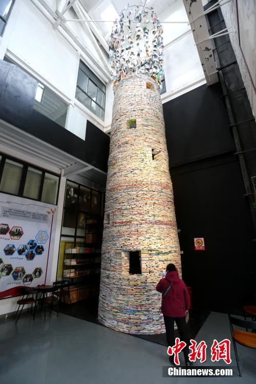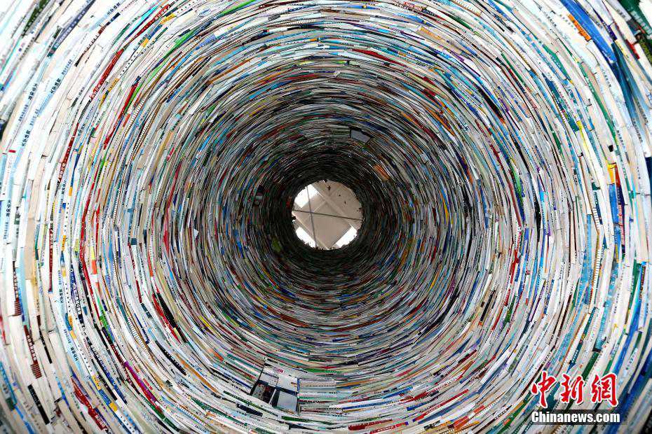 Photos taken on Jan. 22 show a 11-meter-high “book tower” built out of 14 tons of books at Xi’an University of Architecture and Technology's Huaqing College in Xi’an, northwest China’s Shaanxi Province.