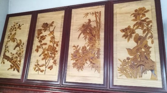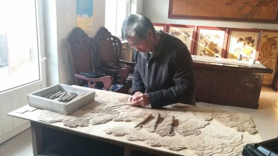 He started to carve things on wood in 2002. Now, many of his works are nearly perfect, including simple patterns, flowers, and birds for home decoration.