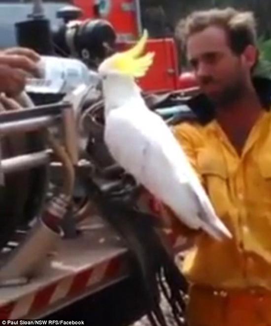 A heartwarming video captured by RFS fireman Paul Sloan shows a fellow firefighter holding the beautiful bird while it hastily guzzled a bottle of water at a bush fire near Taralga, in the Southern Tablelands.