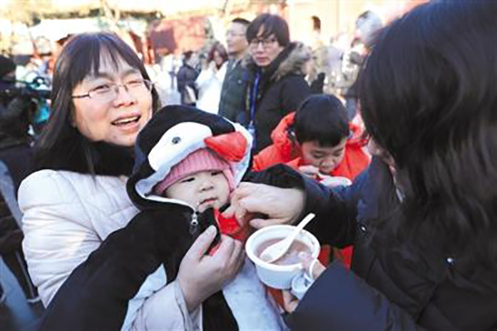 About 6,600 people lined up for Laba congee, which is believed to bring good luck in the New Year, at Yonghegong Lama Temple in the early morning in Beijing on Jan. 24. The day marks the Laba Festival, a traditional Chinese festival held on the eighth day of the 12th lunar month.