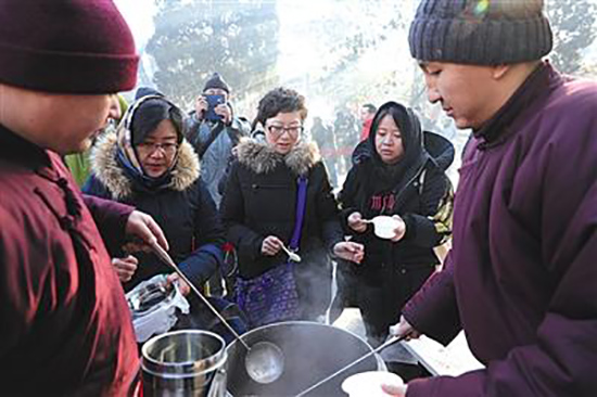 Congee distribution has been a tradition of the temple for a long time. Some believe the porridge confers Buddha’s blessings.