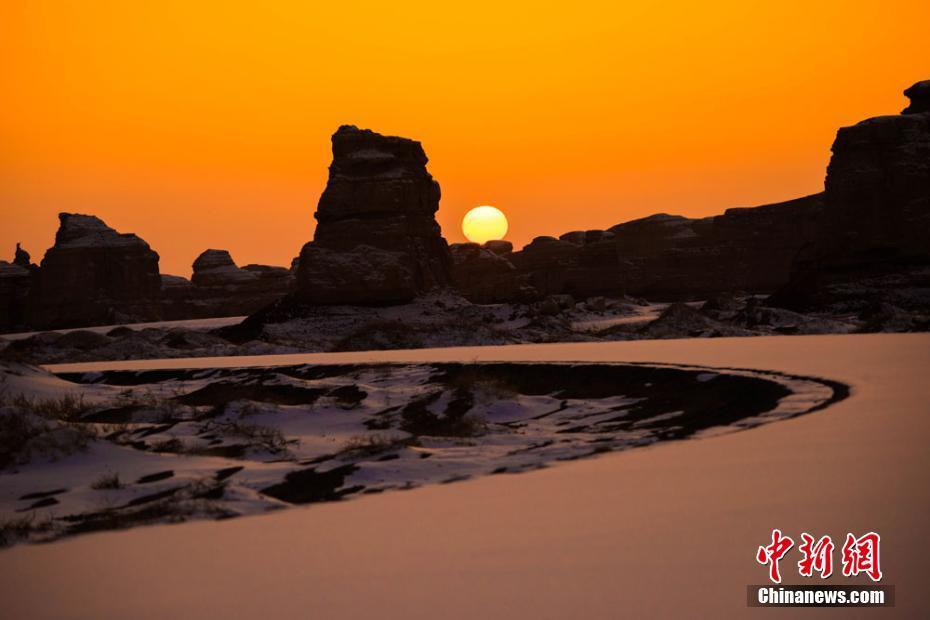 Photos taken on Feb. 1 show the snow scenery of the Dunhuang Yardang National Geopark in Dunhuang, northwest China’s Gansu Province.