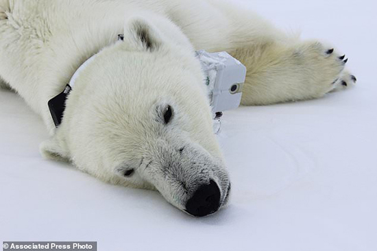 For their research, the scientists spied on the polar bears by equipping nine female white giants with tracking collars that had video cameras and the bear equivalent of a Fitbit during three recent springs.