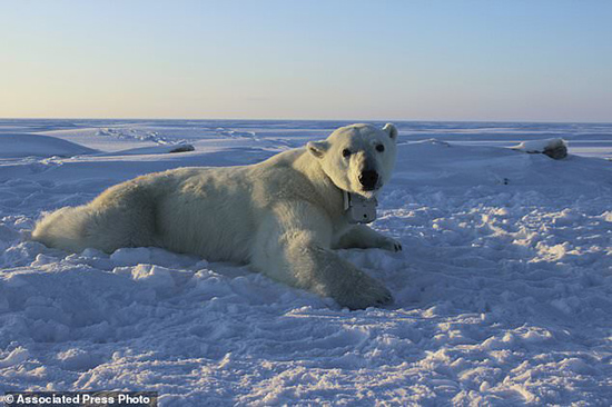 For their research, the scientists spied on the polar bears by equipping nine female white giants with tracking collars that had video cameras and the bear equivalent of a Fitbit during three recent springs