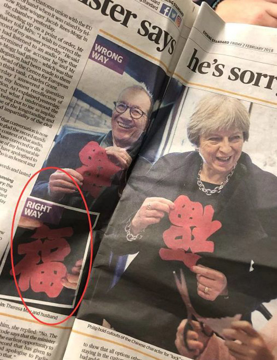 In deep mire of Brexit negotiations, British Prime Minister Teresa May was recently mocked by London news for “wrongly” holding a traditional Chinese paper cut upside down.