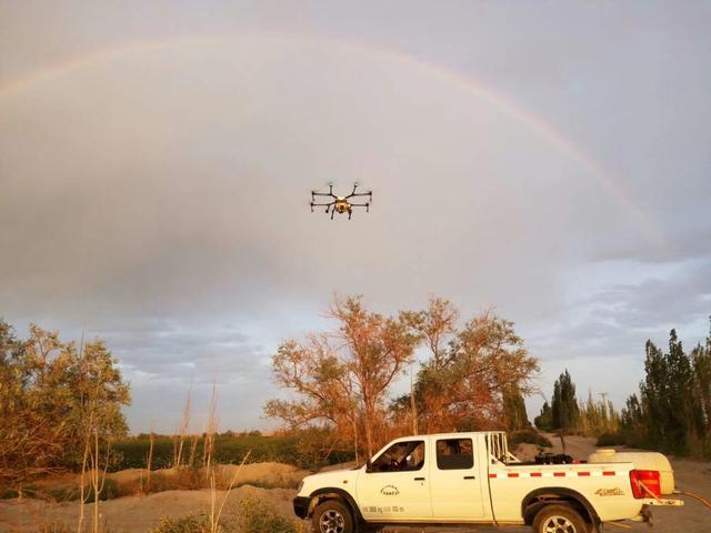 In addition to the high efficacy, a drone uses 100 kilograms of water to protect each mu of cotton field, but a tractor uses 500 kilograms. The advantage is especially important in Xinjiang, a region with scare water resources.