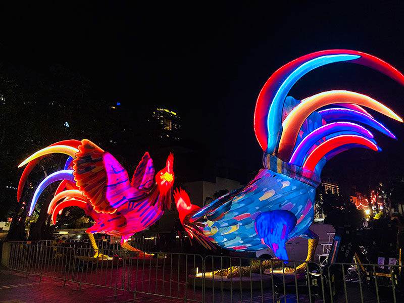 The celebration had drawn thousands of visitors to witness the coloring of landmark buildings, the fireworks and to enjoy the festival atmosphere with 12 zodiac animal lanterns, including the main eight-meter-tall golden dog lantern.