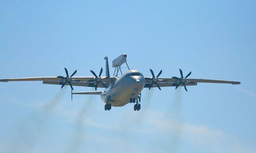 A KJ-200 airborne early warning (AEW) aircraft attached to a Navy aviation regiment under the PLA Northern Theater Command soars over the sky of Jiaodong Peninsula, east China’s Shandong province during an air patrol mission in the 2018 Spring Festival holiday. Photo:eng.chinamil.com.cn