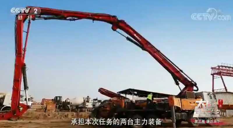 Pump truck with a 47-meter-long arm. (Source: screenshot from the documentary “The Pillars of a Great Power II” filmed by China Central Television.)