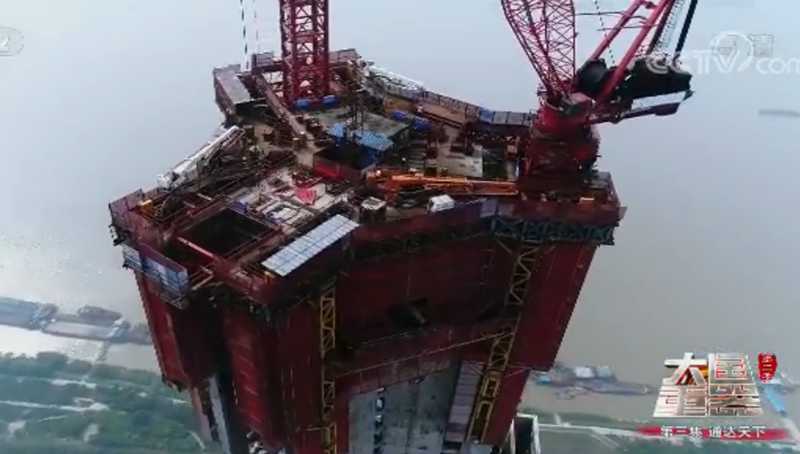 Latest-generation jack platform designed for construction of super-tall buildings. (Source: screenshot from the documentary “The Pillars of a Great Power II” filmed by China Central Television.)