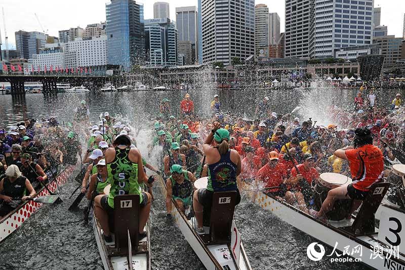 he biggest Dragon Boat Race in the Southern Hemisphere (People's Daily Online Jing Li)