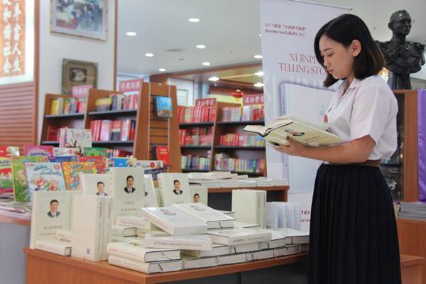 A Thai student leafs through Xi Jinping: The Governance of China, the collected speeches, talks, interviews, notes and letters of the Chinese leader. (Photo by Sun Guangyong from People’s Daily)