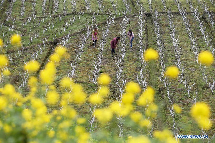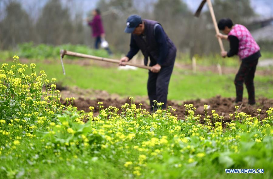Farmers work in the fields at Taihe Village of southwest China's Chongqing Municipality, March 12, 2018. Farmers are busy with their work in the early spring. (Xinhua/Yang Min)