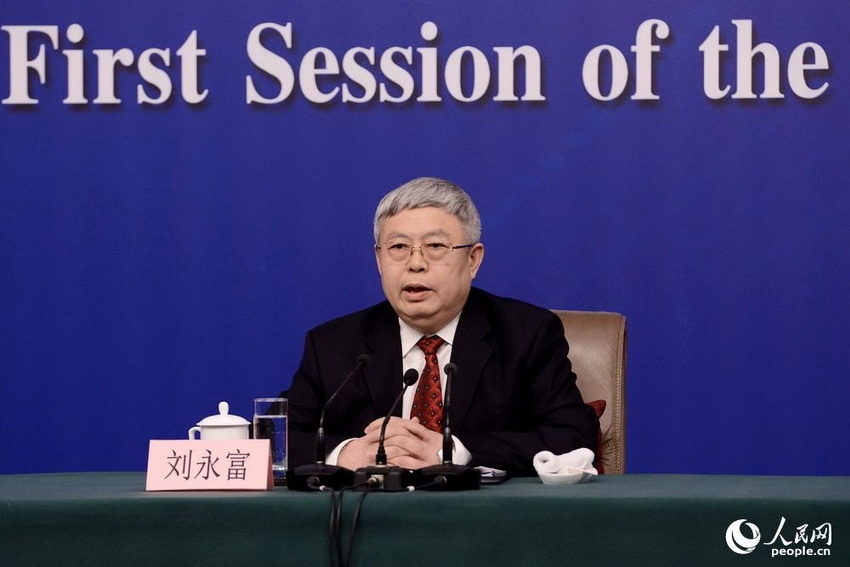 Liu Yongfu, director of the State Council Leading Group Office of Poverty Alleviation and Development, takes questions at a press conference during the first session of the 13th National People's Congress in Beijing, capital of China, March 7, 2018. (Photo by Zhang Qichuan from People’s Daily Online)