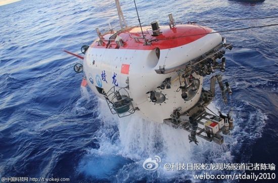 Chinese submersible Jiaolong descends to a depth of 7,062 meters, creating a world record, June 27, 2012. (Photo by Chen Yu from the Science and Technology Daily)