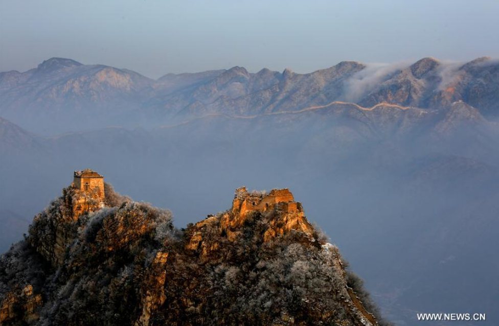 Photo taken on March 18, 2018 shows the Jiankou Great Wall after a snowfall in Huairou District of Beijing, capital of China. (Xinhua/Bu Xiangdong)
