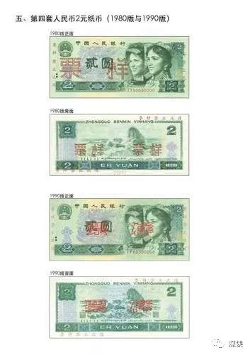 The 1980 and 1990 editions of the 2-yuan banknote.