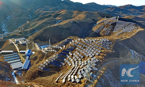 Photo taken on Feb. 12, 2017 shows the Gehetou photovoltaic power generation station in Qinhuangdao, north China (Xinhua/Yang Shiyao)