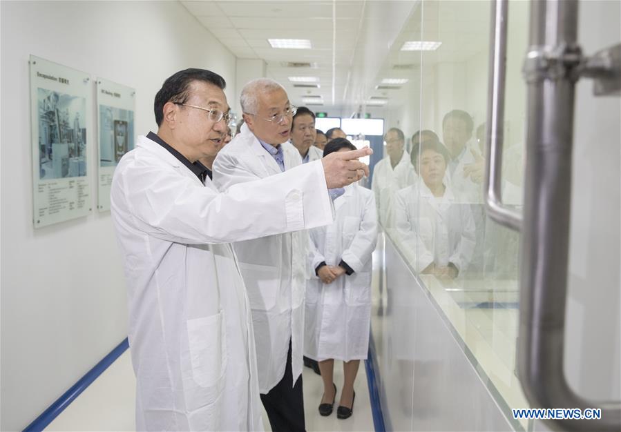 Chinese Premier Li Keqiang visits a foreign medicine firm in Shanghai, east China, April 10, 2018. Li made a two-day inspection that ended Wednesday to the municipality. (Xinhua/Wang Ye)