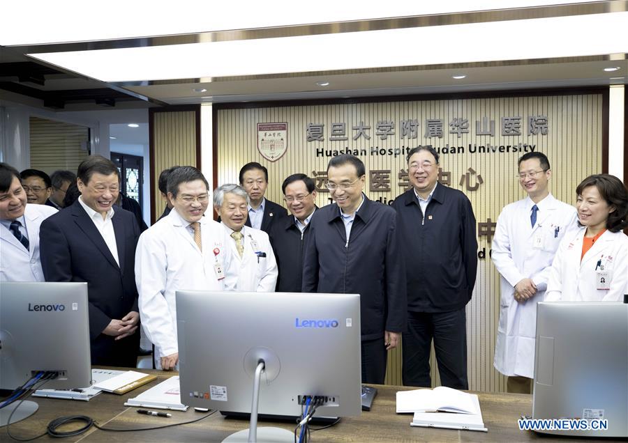 Chinese Premier Li Keqiang visits a hospital in Shanghai, east China, April 11, 2018. Li made a two-day inspection that ended Wednesday to the municipality. (Xinhua/Wang Ye)