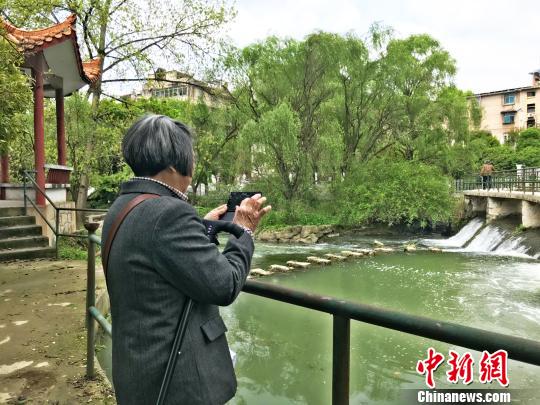 81-year-old Lei Yueqin by the Nanming River. (Photo: Chinanews.com)