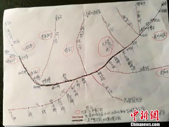 A hand-drawn map by Lei depicting pollution sources. (Photo: Chinanews.com)