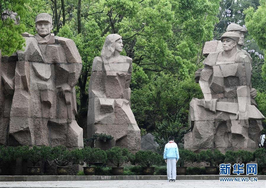 A child stands in front of martyrs statues inside Martyrs Memorial in Hangzhou, Zhejiang Province. (Photo: Xinhua)