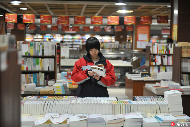 A high school student read books at a bookstore in Linan in east China's Zhejiang Province, on Saturday, March 2, 2013. [Photo: IC]