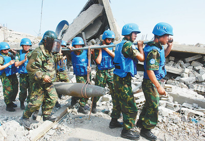 A total of 9,719 landmines and duds have so far been discovered and removed by Chinese peacekeepers in Lebanon.