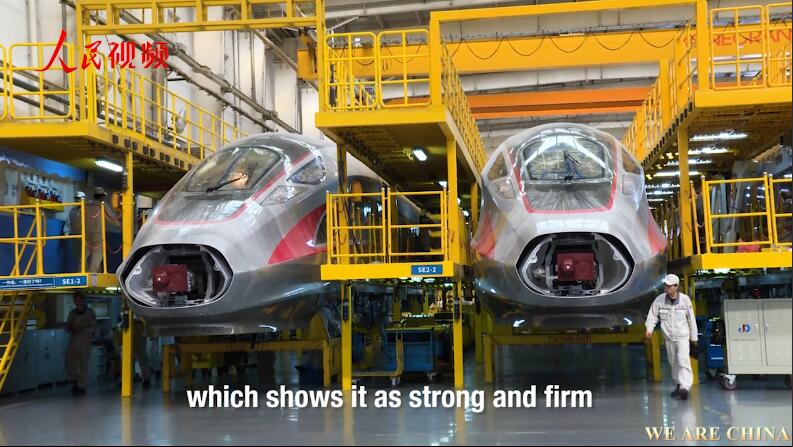 A huge production base of high-speed electric multiple unit (EMU) trains, CRRC Qingdao Sifang Co., Ltd. covers an area of 1.77 million square meters, equivalent to the size of 248 standard soccer fields. The very first "Fuxing" bullet train was born here. The EMU can maintain a constant speed of 350 kilometers an hour, with China holding the complete intellectual property rights of these new bullet trains.